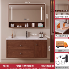 沐枫优家胡桃色中古风实木浴室柜陶瓷一体盆卫生间洗手盆洗70CM胡桃色