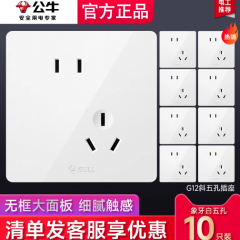 公牛开关插座86型暗装电源家用墙壁面板斜五孔【10只装】